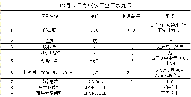 12月17日出廠水水質(zhì)公示