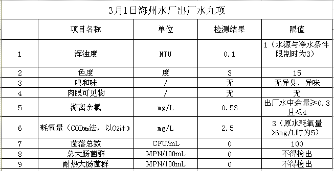 2017年3月1日出廠水水質