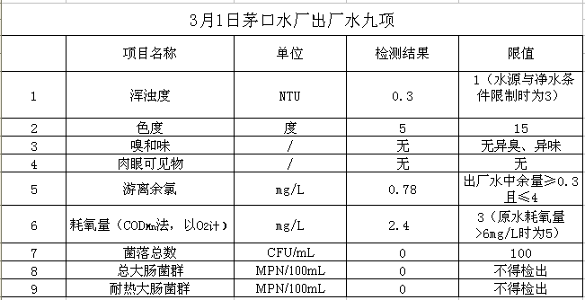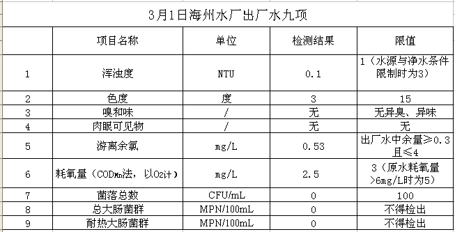 2017年3月1日出廠水水質