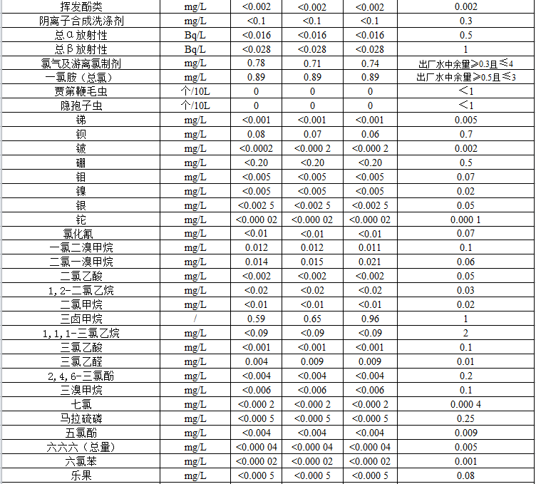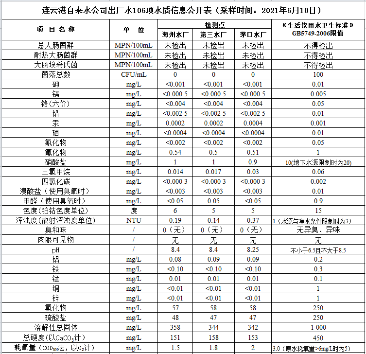 2021年上半年106項(xiàng)水質(zhì)公示