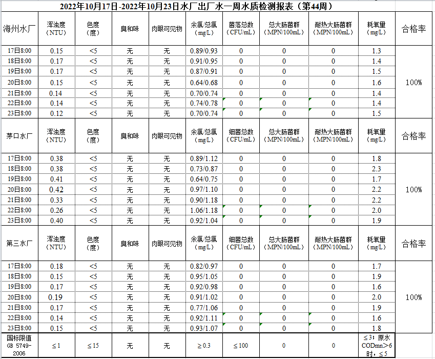2022年10月17日—10月23日出廠水水質(zhì)公示