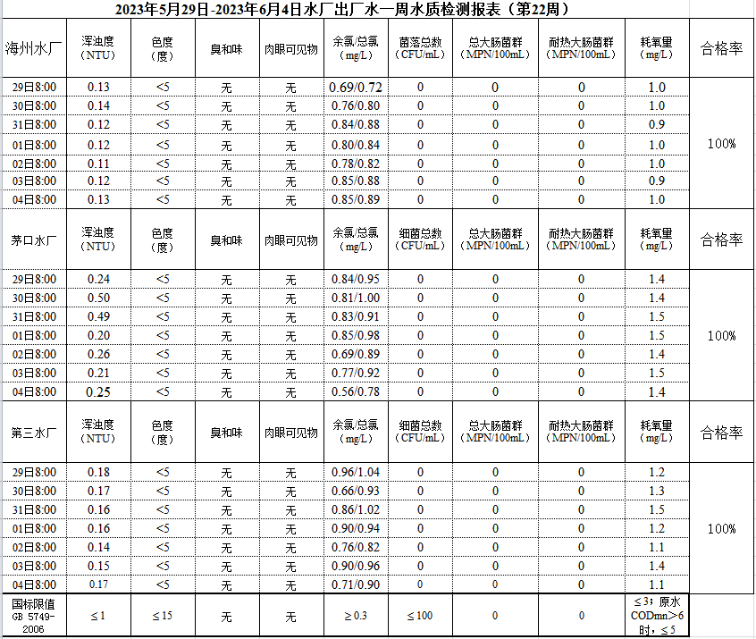2023年5月29日—6月4日出廠水水質(zhì)公示