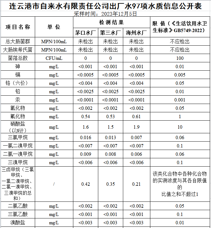2023年下半年97項水質(zhì)公示