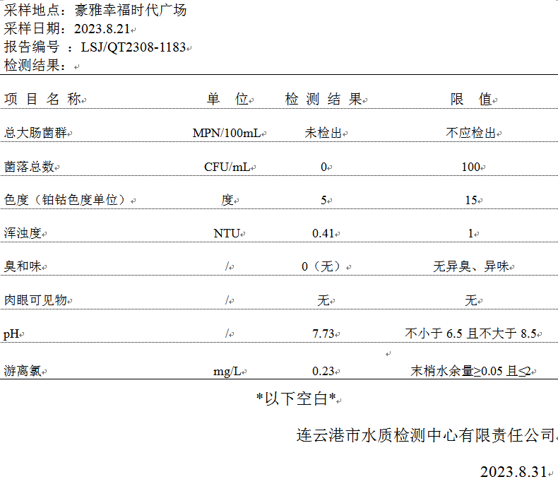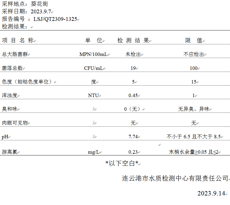 當前位置:首頁 >> 服務指南 >> 水質公示