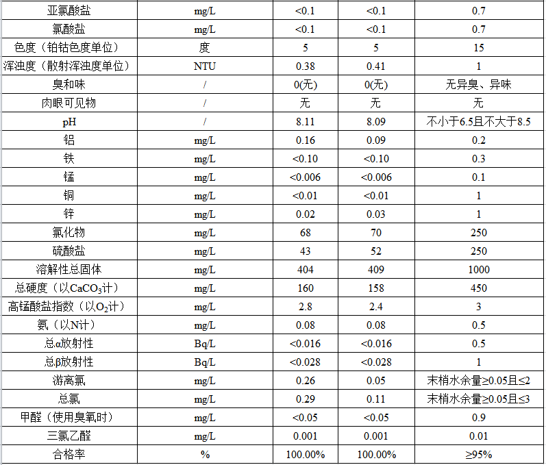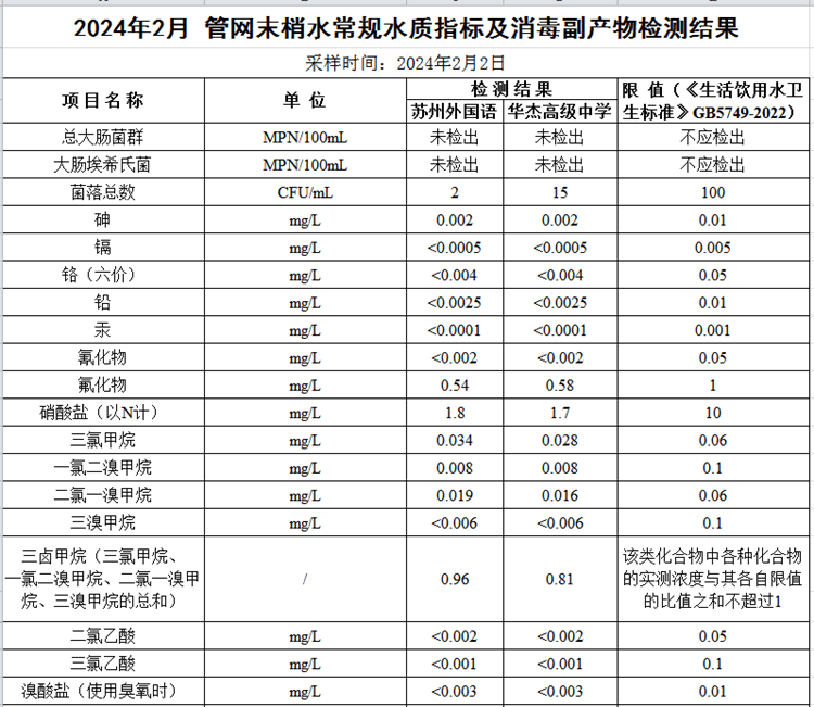 2024年2月份管網(wǎng)水水質(zhì)公示