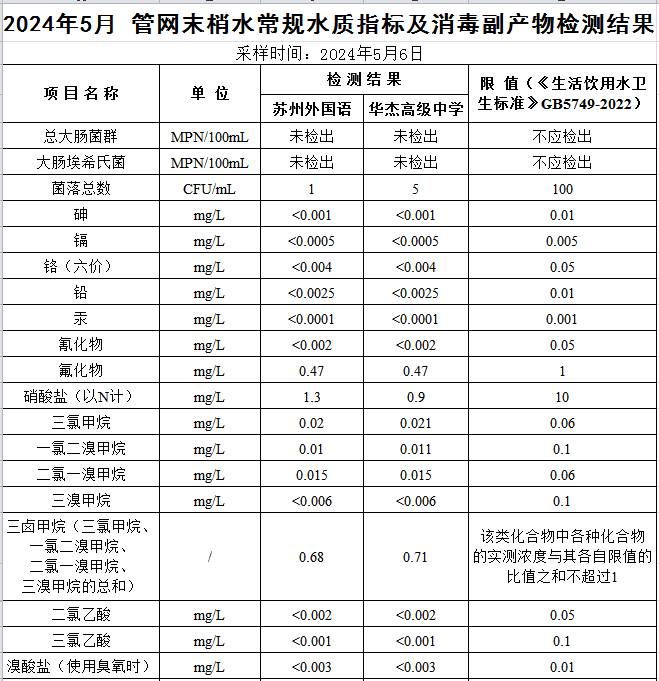 2024年5月份管網水水質公示