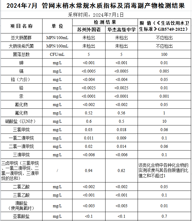 2024年7月份管網水水質公示