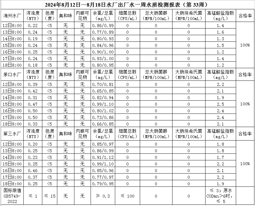 2024年8月12日-8月18日出廠水水質(zhì)公示