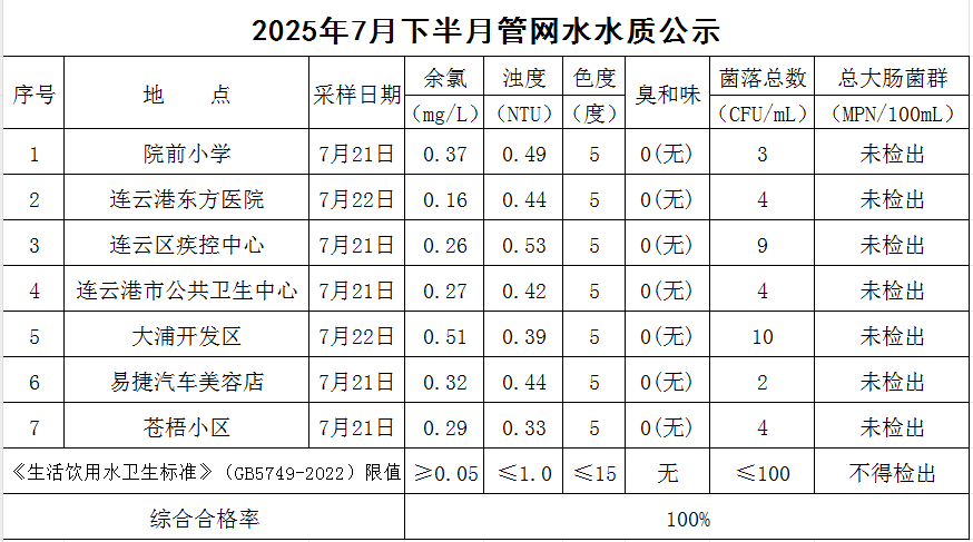 2025年7月下半月管網水水質公司