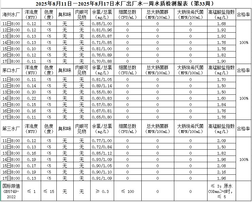 2025年8月11日——8月17日出廠水水質(zhì)公示