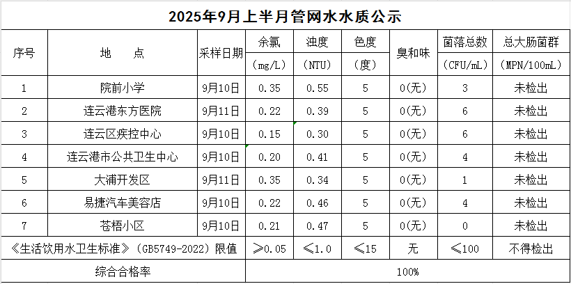 2025年9月上半月管網水水質公司